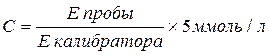 где С – концентрация калия в плазме крови в моль/л; Е пробы – оптическая плотность опытной