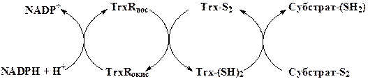 связь в активном центре тиоредоксина (Trx) и других субстратов, напрямую используя НАДФН. Восстановленный тиоредоксин в