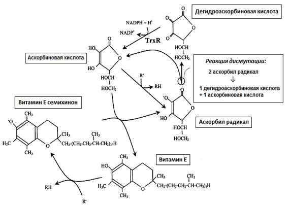 витамина Е, который может быть восстановлен аскорбиновой кислотой. В этой