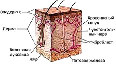 Кожа состоит из эпидермиса и дермы. Под кожей располагается жировая клетчатка (рис. 2).