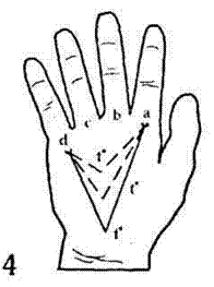 папиллярных линий. На ладонях насчитывается 4 пальцевых трирадиуса a, b, c, d, расположенных у основания 2–5 пальцев. Вблизи основания ладони