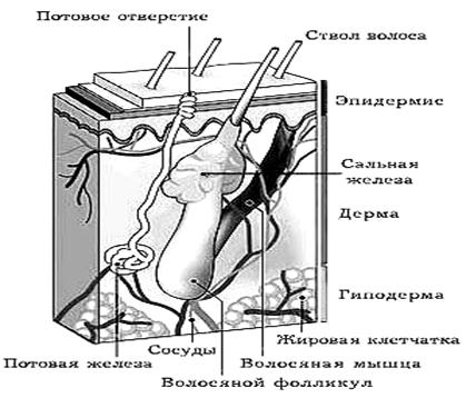 выполняют потовые и сальные железы (рис. 2). Сальные железы открываются в волосяные