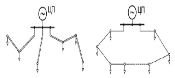 сети могут выполняться разомкнутыми и замкнутыми. При разомкнутой конфигурации