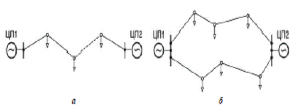 Рис.2.5. Конфигурация сети с двусторонним питанием: а –