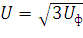 фазное напряжение узла обозначим Uф, а междуфазное (линейное) U-, причем