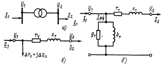 трансформатор можно представить в идее Г – образной схемы замещения (рис.6.2, б,в)