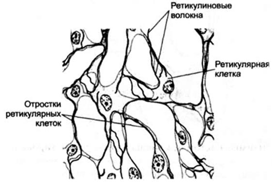 ретикулярных клеток, имеющих длинные отростки. Ретикулярные клетки вместе с