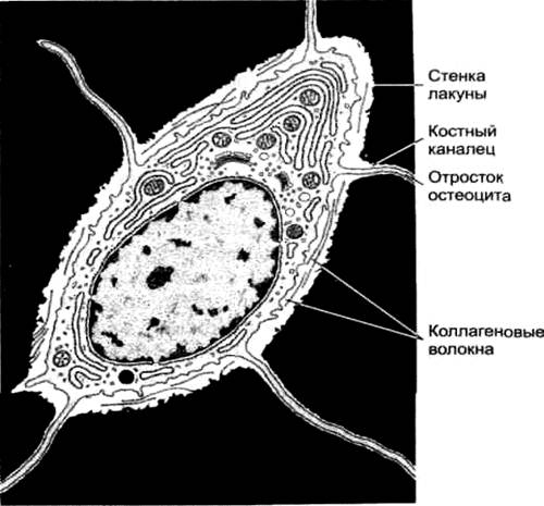остеобластов. Остеоциты имеют звездчатую форму и отростки, соприкасающиеся с