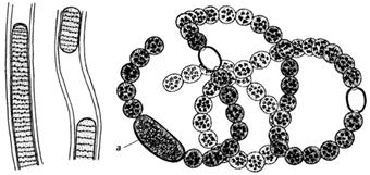 Рис. 9. Сине-зеленые водоросли порядка Nostocales: