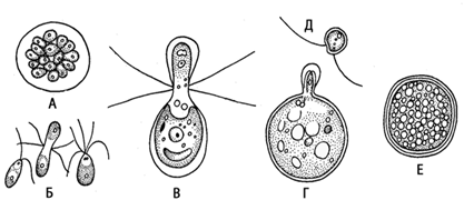 В – гетерогамия; Г – оогамия; Д – мужская гамета; Е – зигота