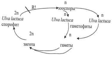 Усложнение изоморфного цикла развития наблюдается у представителей порядка ульвовые. Ульва (морской салат) это макроскопическая морская водоросль теплых мелководий (рис.15).