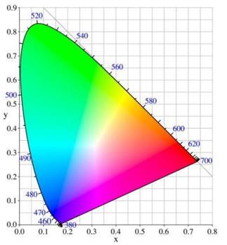 Это означает, что каждый цвет может быть точно описан в цветовых координатах а