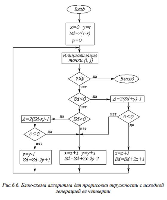 изложенных соображений алгоритма для прорисовки окружности с исходной