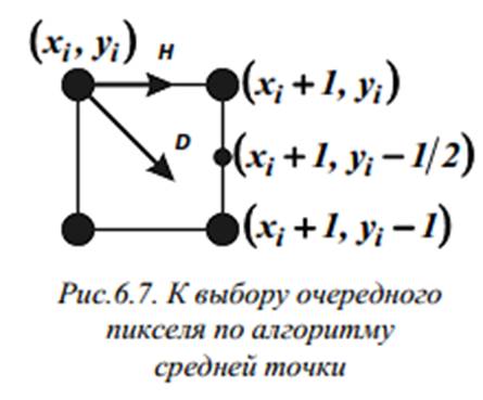 Рассмотрим теперь более позднюю и достаточно простую версию алгоритма Брезенхема (алгоритм средней точки). В