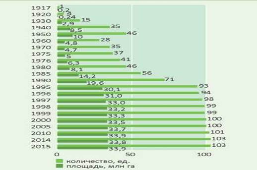 Минприроды России общая площадь памятников природы федерального значения в 2015