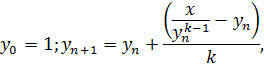 приближение, для котрого |yn+1-yn|<E. Вычисление yk оформить в виде рекурсивной