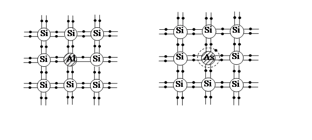 мышьяка замещают в решетке атомы кремния. Мышьяк имеет 5 валентных электронов,