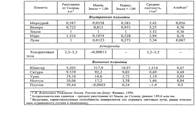 других планет Солнечной системы базируется на знании вещественного состава,