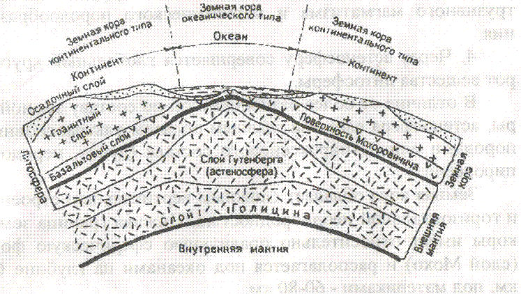 Мохоровичича (слой. Мохо), где происходит скачкообразный рост скорости распространения сейсмических волн. Таким образом, литосфера состоит