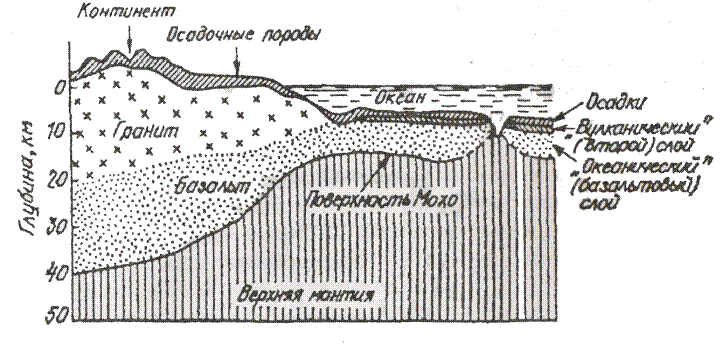 своему внутреннему строению и проявлению на поверхности Земли различают два типа земной коры: континентальную, из которой состоят материки, и океаническую, образующую