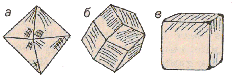 граней кристаллов (например, кварц, пирит). Число плоскостей спайности зависит от симметрии (сингонни) кристалла.