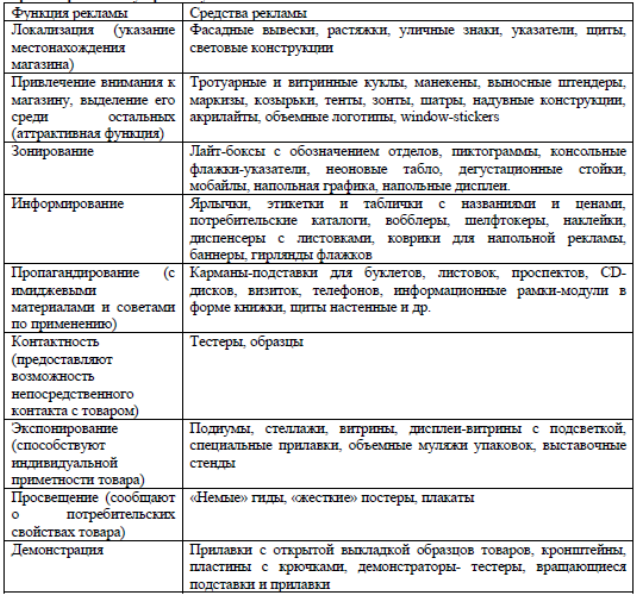 средств рекламы на месте продажи по функционально-ориентированному признаку и