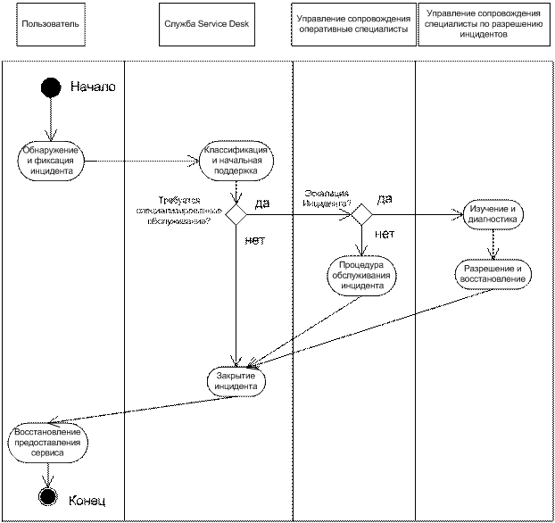 - модель может быть использована в точном соответствии с текстом книг ITIL либо адаптирована пользователем.