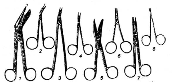 разрезания марли; 2 – малые с одним затупленным концом – для разрезания твердой мозговой