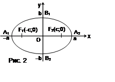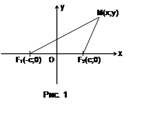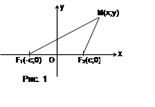 точки F1, F2 проведем ось Ox, а через середину отрезка F1F2 – ось Oy (рис.1). Тогда точки F1, F2 будут иметь