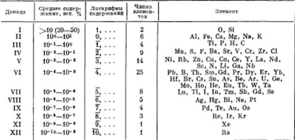у нас Вернадским много лет назад (первые таблицы Кларка были составлены в