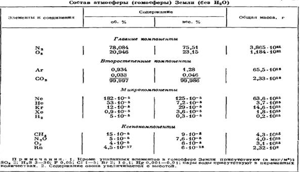 ХИМИЧЕСКИЙ СОСТАВ АТМОСФЕРЫ.